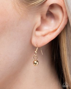 Hammered in mesmerizing detail, a high-sheen gold disc glistens from the ear. Featuring shiny gold and red links, slim snake chains sway below the hammered disc from a gold cap fitting for an edgy mixed metallic lure. Earring attaches to a standard post fitting.